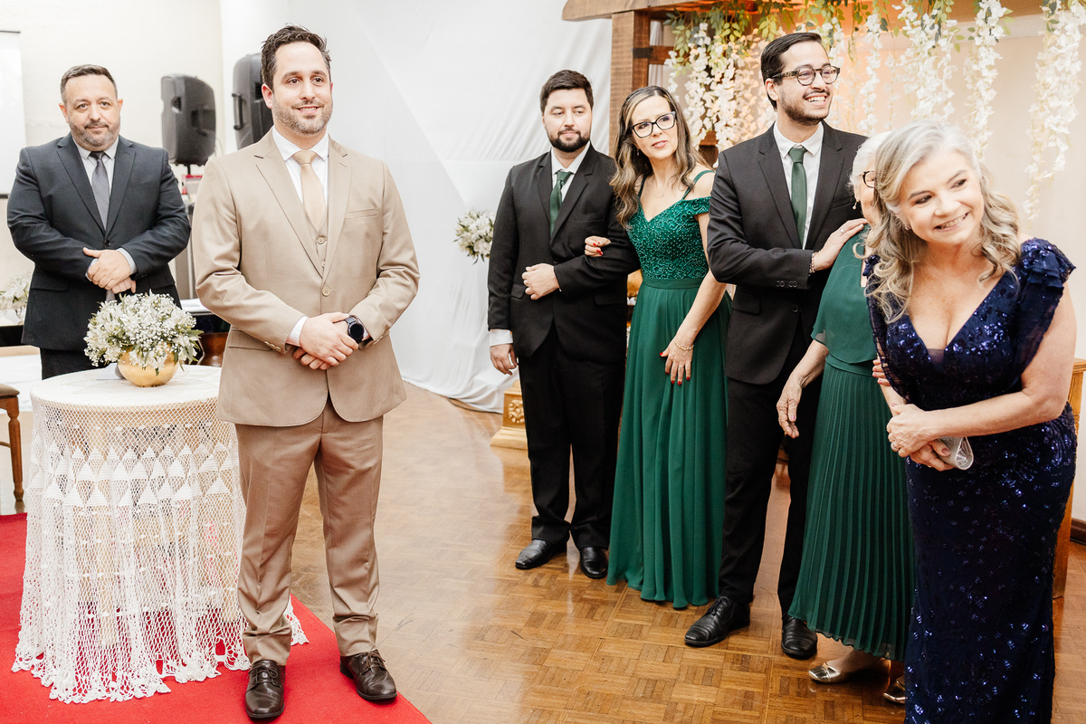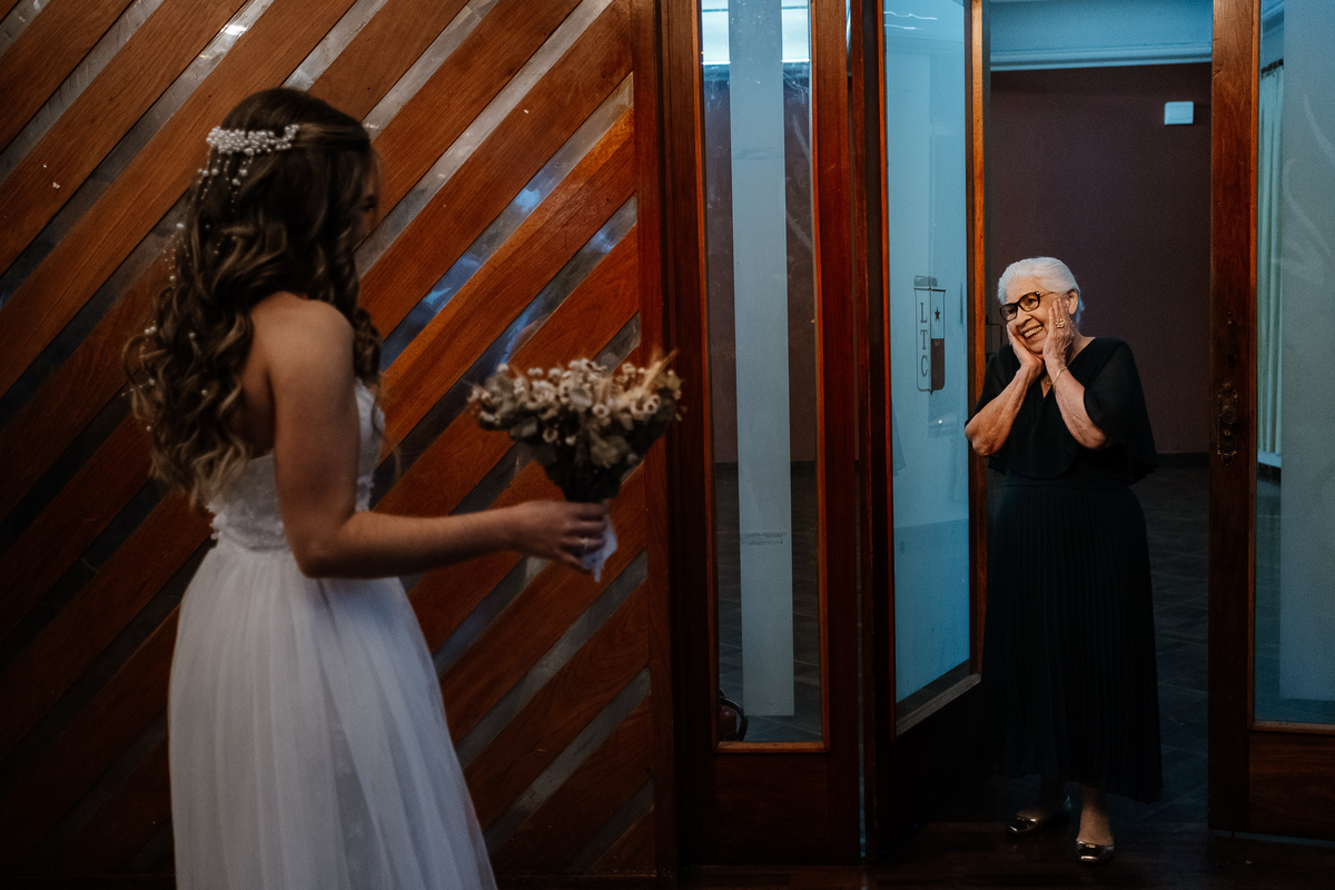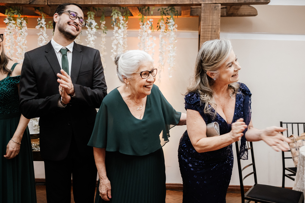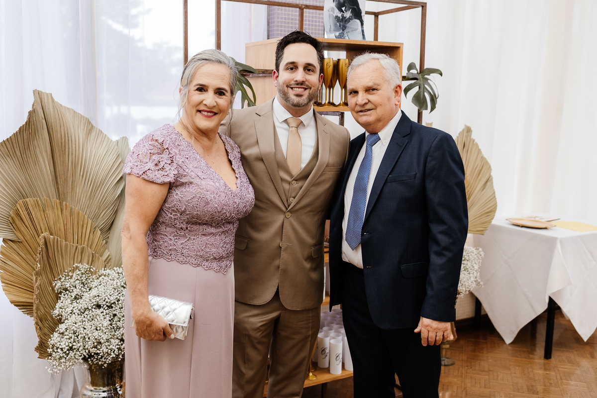 Nos encantou muito a escolha das pessoas especiais para estar ao lado deles nesse dia tão importante. Entre os padrinhos, estava a Avó da noiva, irradiando felicidade, e o melhor amigo dela, completando essa história de amor com cumplicidade e afeto.