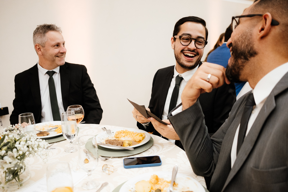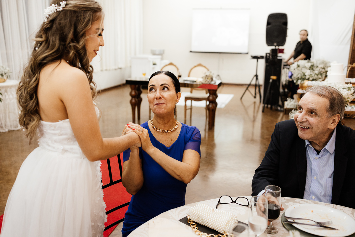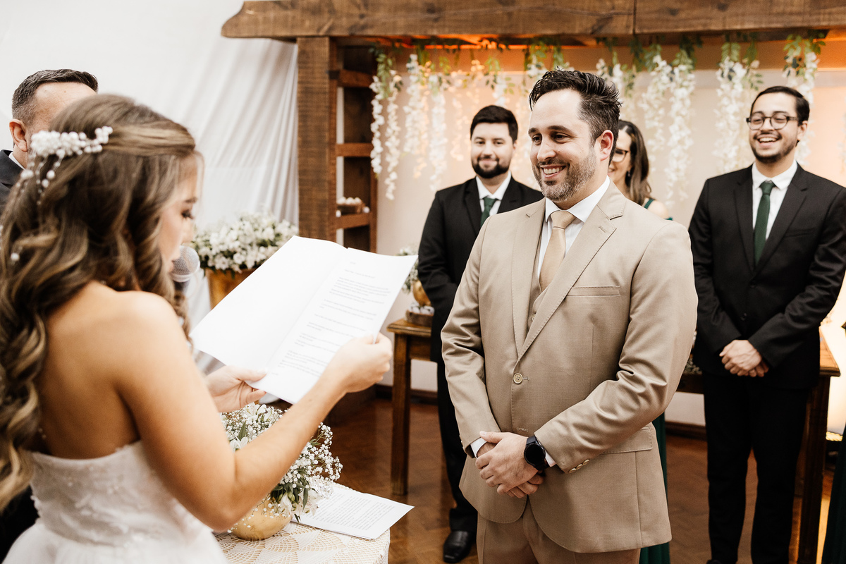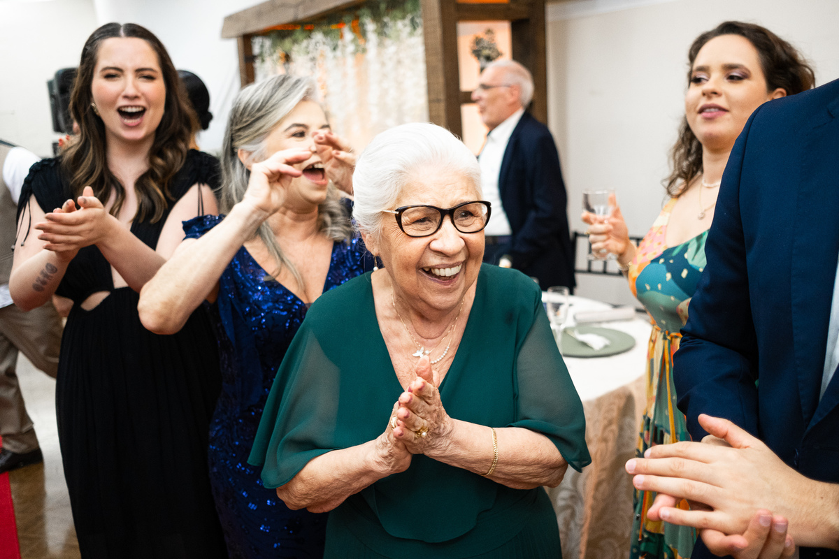 Nos encantou muito a escolha das pessoas especiais para estar ao lado deles nesse dia tão importante. Entre os padrinhos, estava a Avó da noiva, irradiando felicidade, e o melhor amigo dela, completando essa história de amor com cumplicidade e afeto.